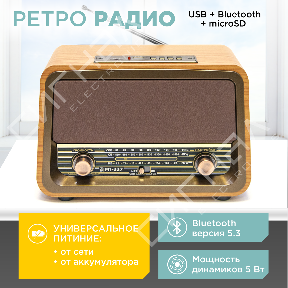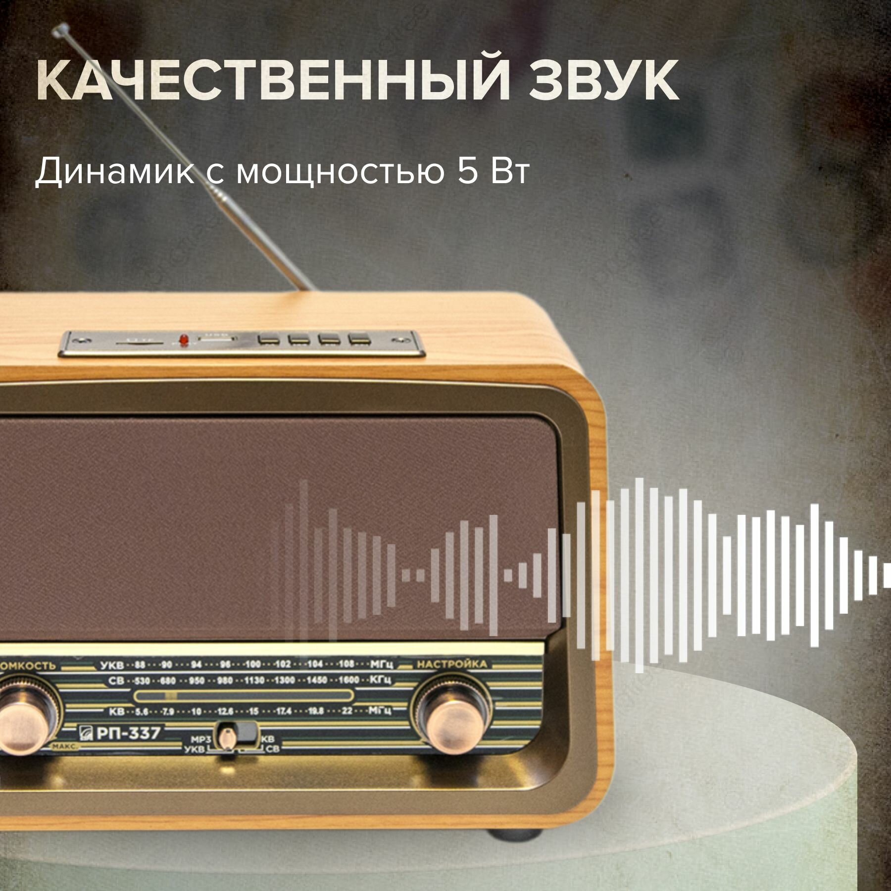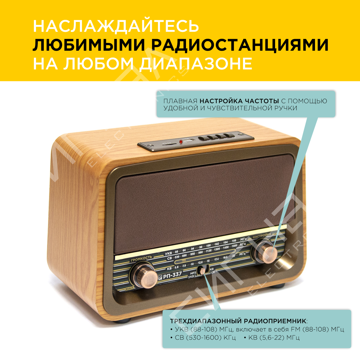Ретро радиоприемник от сети и аккумулятора БЗРП РП-337 / fm радио / блютуз колонка