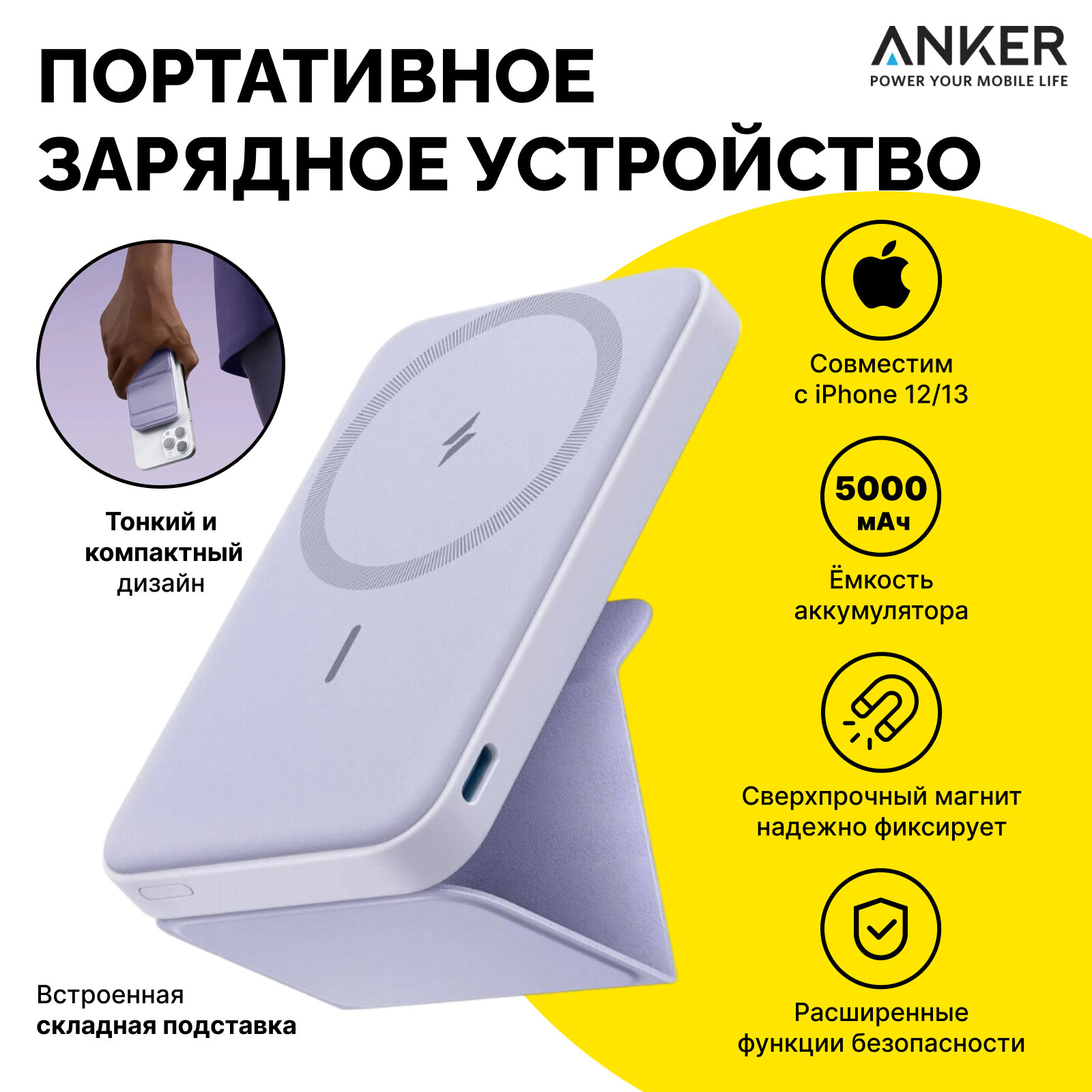 СохранитьПортативное зарядное устройство (Powerbank) Anker 622 MagGo (фиолетовый) интересное: