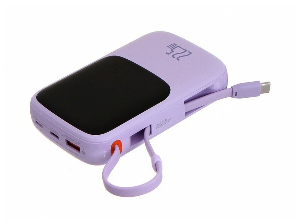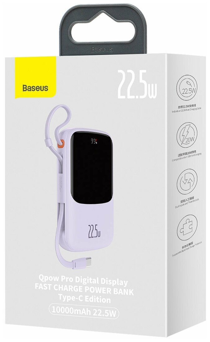 Портативный аккумулятор BASEUS Qpow Pro Digital display fast charge Type-C Edition,10000 mAh, 22.5W, с кабелем Type-C, Purple