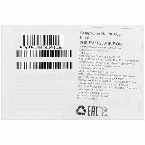 6.7" Смартфон HONOR X8b 256 ГБ черный