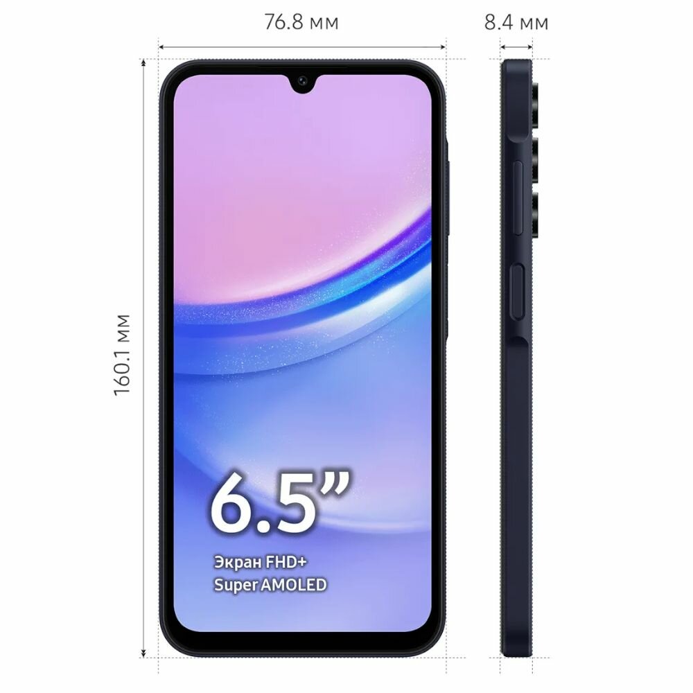 Смартфон Samsung Galaxy A15 4G 8/256 ГБ, Dual nano SIM, темно-синий (Blue Black)