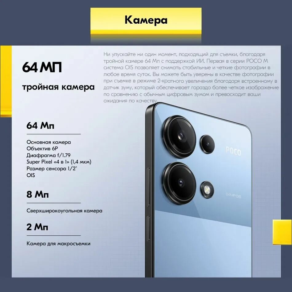 Глобальная версия Helio G99 Ultra 120Hz Flow AMOLED 64MP Triple Camera с OIS 67W turbo charging, Official Standard, Poco, M6 Pro, Смартфон, Голубой, 12ГБ, 512ГБ, global, новый, 01.01.2024