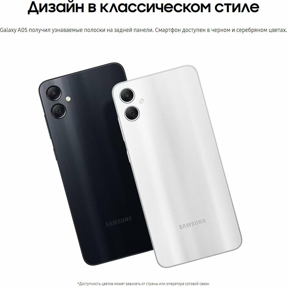 Смартфон Samsung Galaxy A05 6/128 Гб, Silver