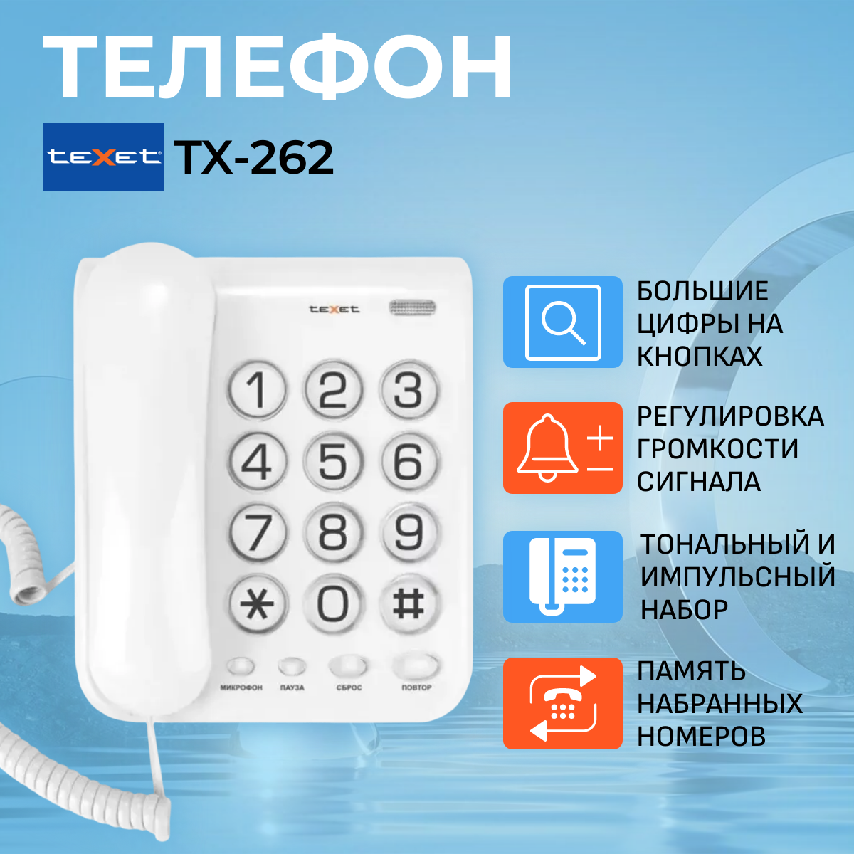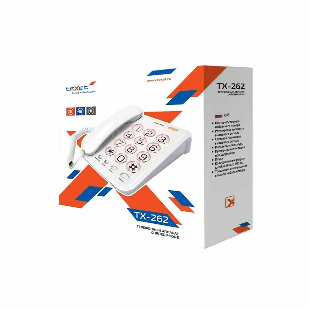 Телефон проводной TeXet TX-262, повторный набор, регулятор громкости звонка, белый интересное: