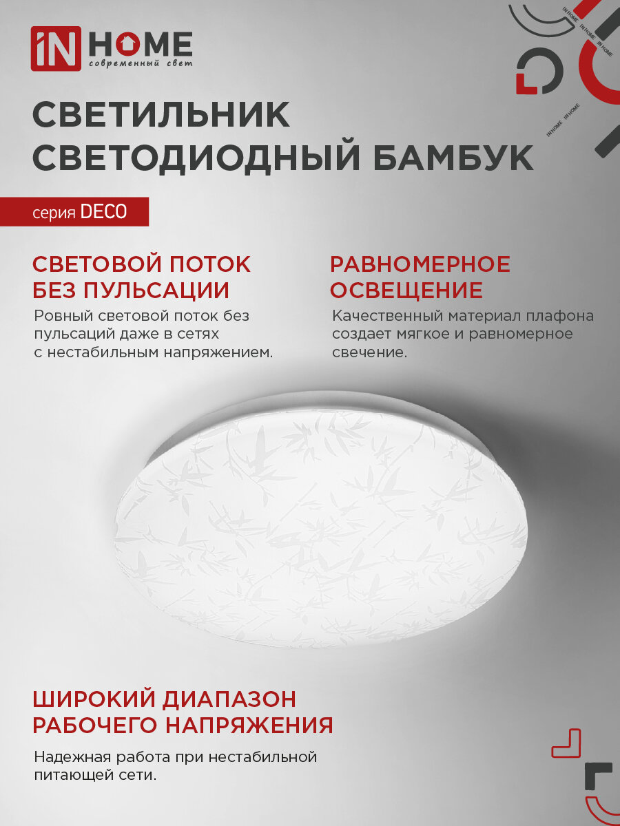 Купить Светильник светодиодный DECO бамбук 36Вт 230В 4000К 2340лм 350мм IN HOME 4690612025049