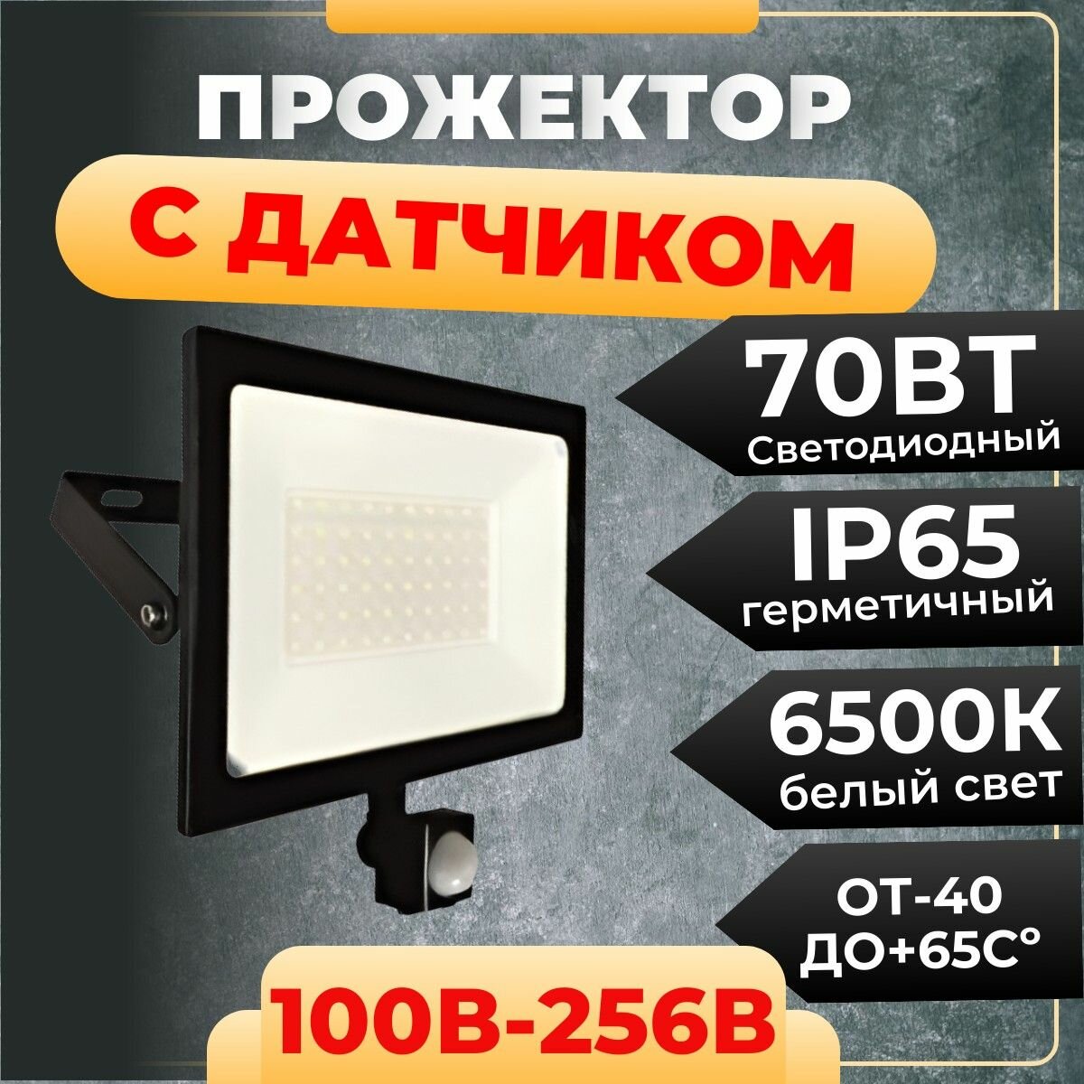 Прожектор светодиодный с датчиком движения 70W 6500K IP65 для дома, парковки, производства, охраны, 6500К,IP65 холодный белый