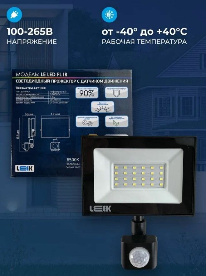СохранитьПрожектор светодиодный 70Вт с датчиком движения, IP65, для внутреннего и наружного освещения дворов, подъездов, охраняемых территорий, влагостойкий, LEEK интересное: