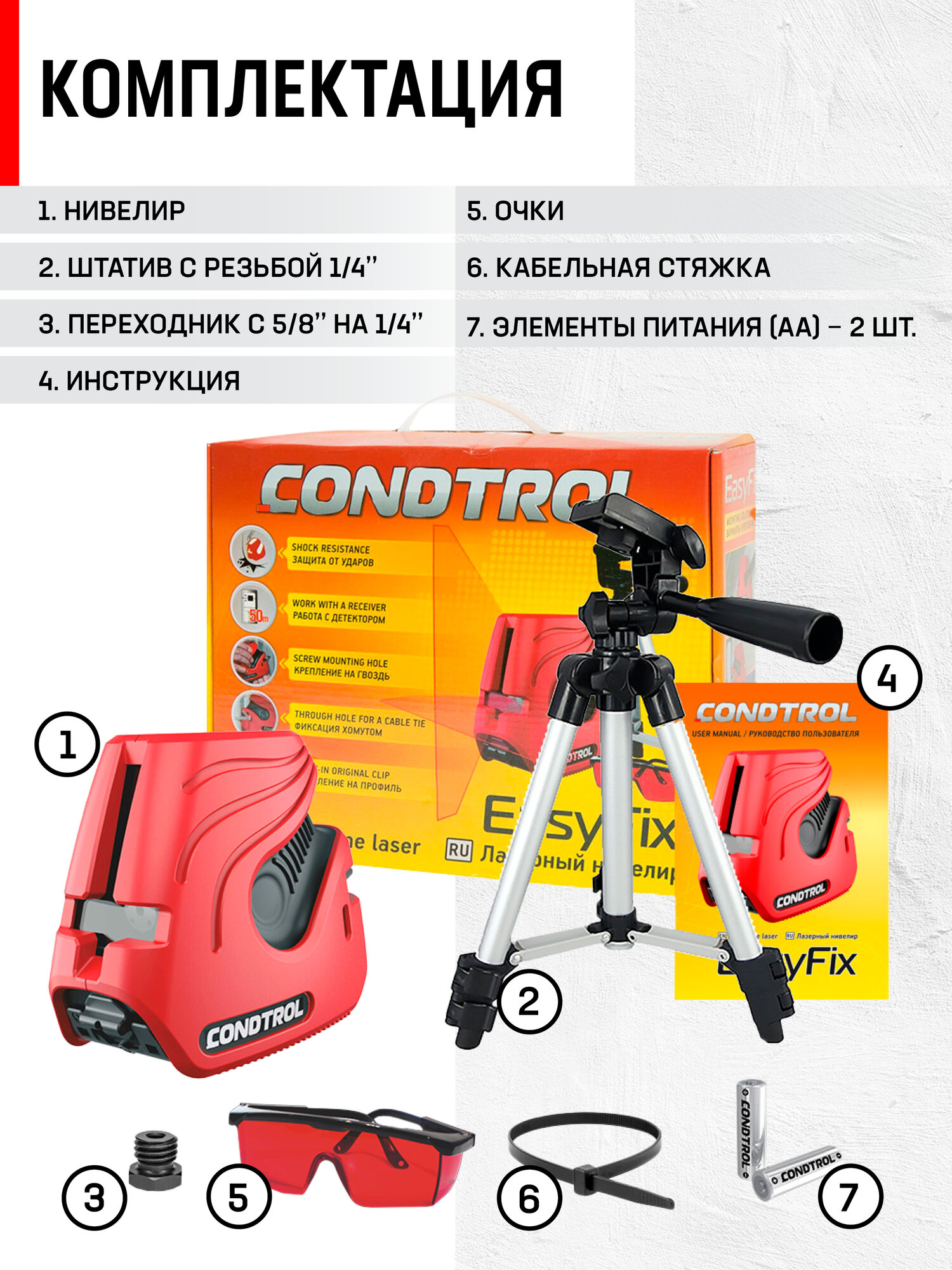 Лазерный уровень CONDTROL EasyFix в комплекте штатив. Нивелир с красным лучом интересное: