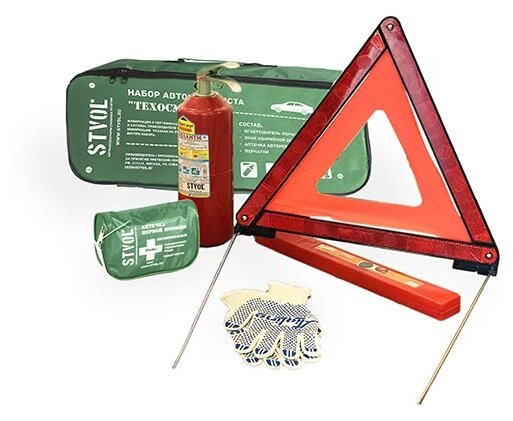 STVOL SNA02 Набор автомобилиста "Техосмотр", ГОСТ (Знак+Аптечка+Огнетушитель ОП2+Перчатки)