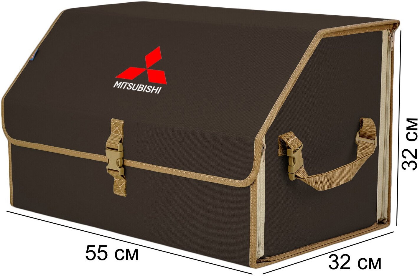 Купить Органайзер-саквояж "Союз" в багажник Mitsubishi (Митсубиши), размер XL. Цвет: коричневый с бежевой окантовкой.