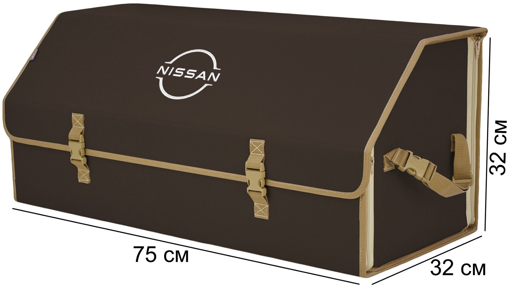 Органайзер-саквояж в багажник "Союз" (размер XXL). Цвет: коричневый с бежевой окантовкой и вышивкой Nissan (Ниссан).