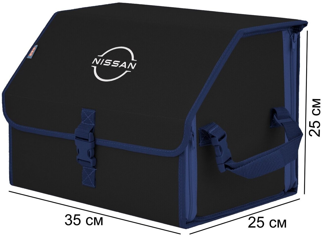 Органайзер-саквояж в багажник "Союз" (размер M). Цвет: черный с синей окантовкой и вышивкой Nissan (Ниссан).