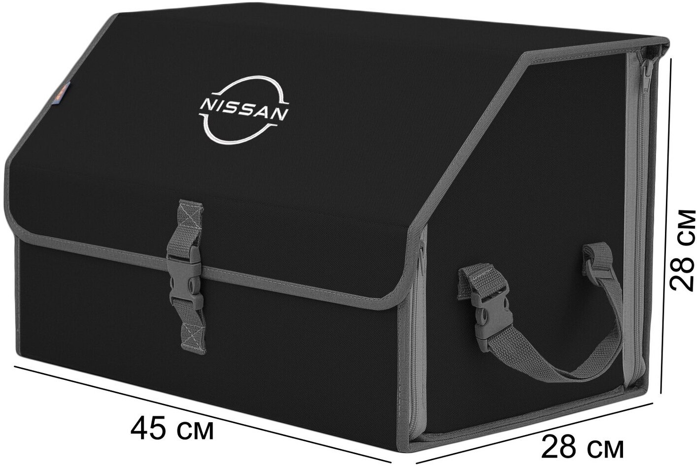 Органайзер-саквояж в багажник "Союз" (размер XL Plus). Цвет: черный с серой окантовкой и вышивкой Nissan (Ниссан).