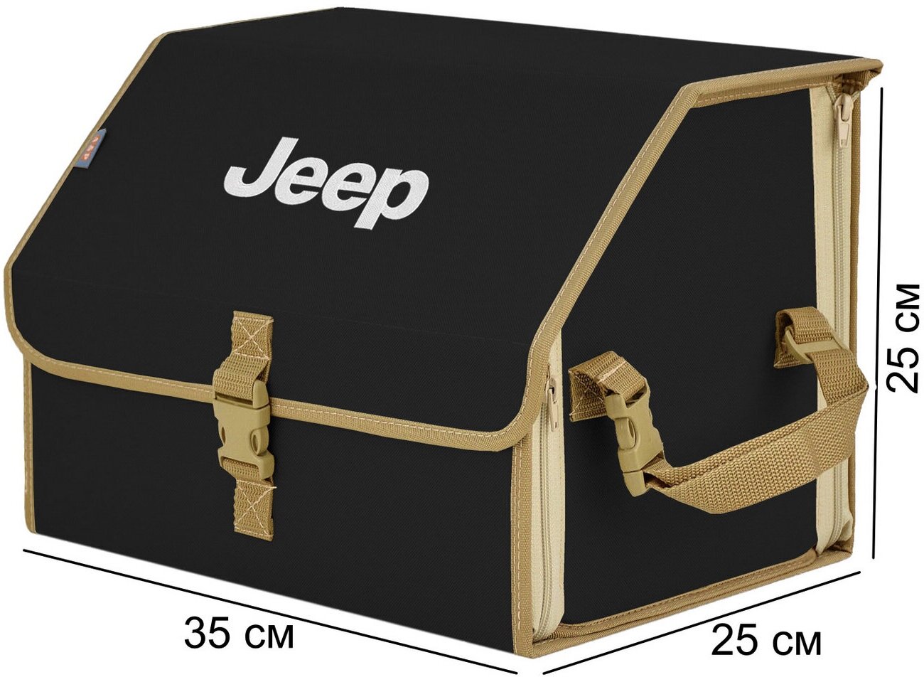 Органайзер-саквояж в багажник "Союз" (размер L). Цвет: черный с бежевой окантовкой и вышивкой Jeep (Джип).