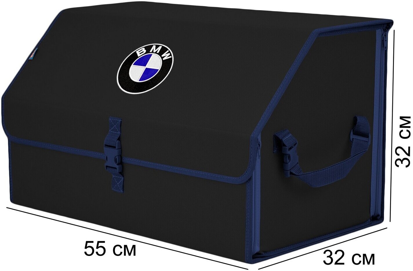 Органайзер-саквояж в багажник "Союз" (размер L). Цвет: черный с синей окантовкой и вышивкой BMW (БМВ).