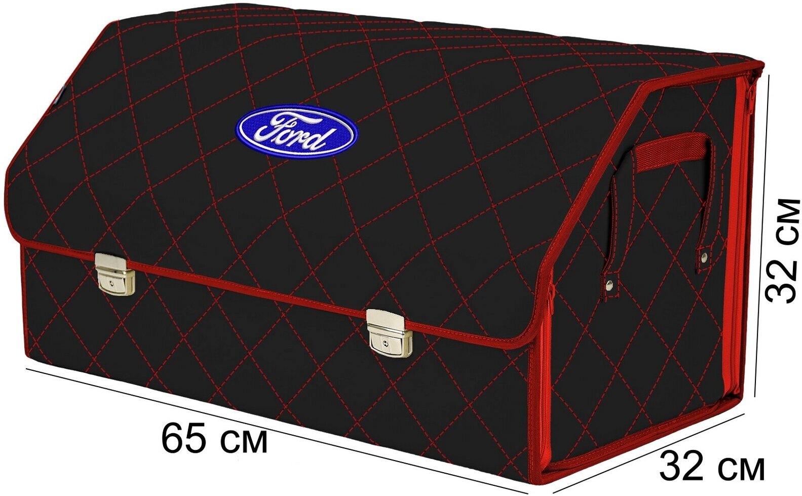 Органайзер-саквояж в багажник "Союз Премиум" (размер XL). Цвет: черный с красной прострочкой Ромб и вышивкой Ford (Форд).