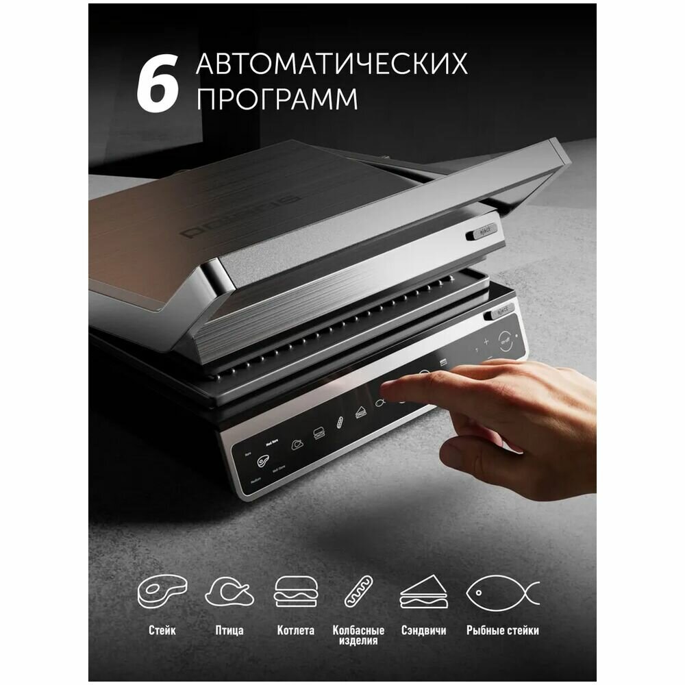 | Дополнительная информация | автоматическое определение толщины продукта; 6 автоматических программ; 4 степени прожарки: rare, med rare, medium, well done |