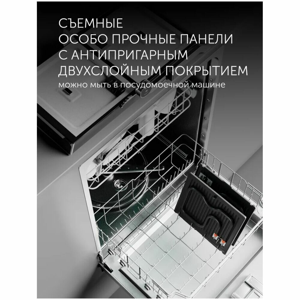 | Особенности | антипригарное покрытие / поддон для сбора жира / съемные пластины |