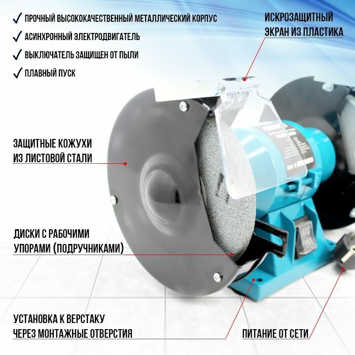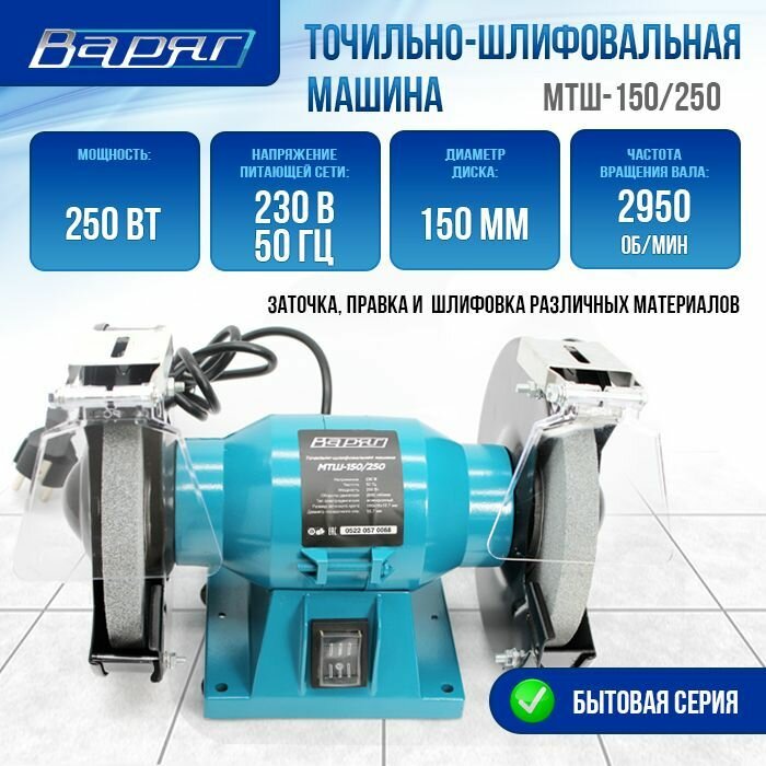 Точильный станок ВАРЯГ MTШ-150, электрический, 150x16x12,7 см интересное: