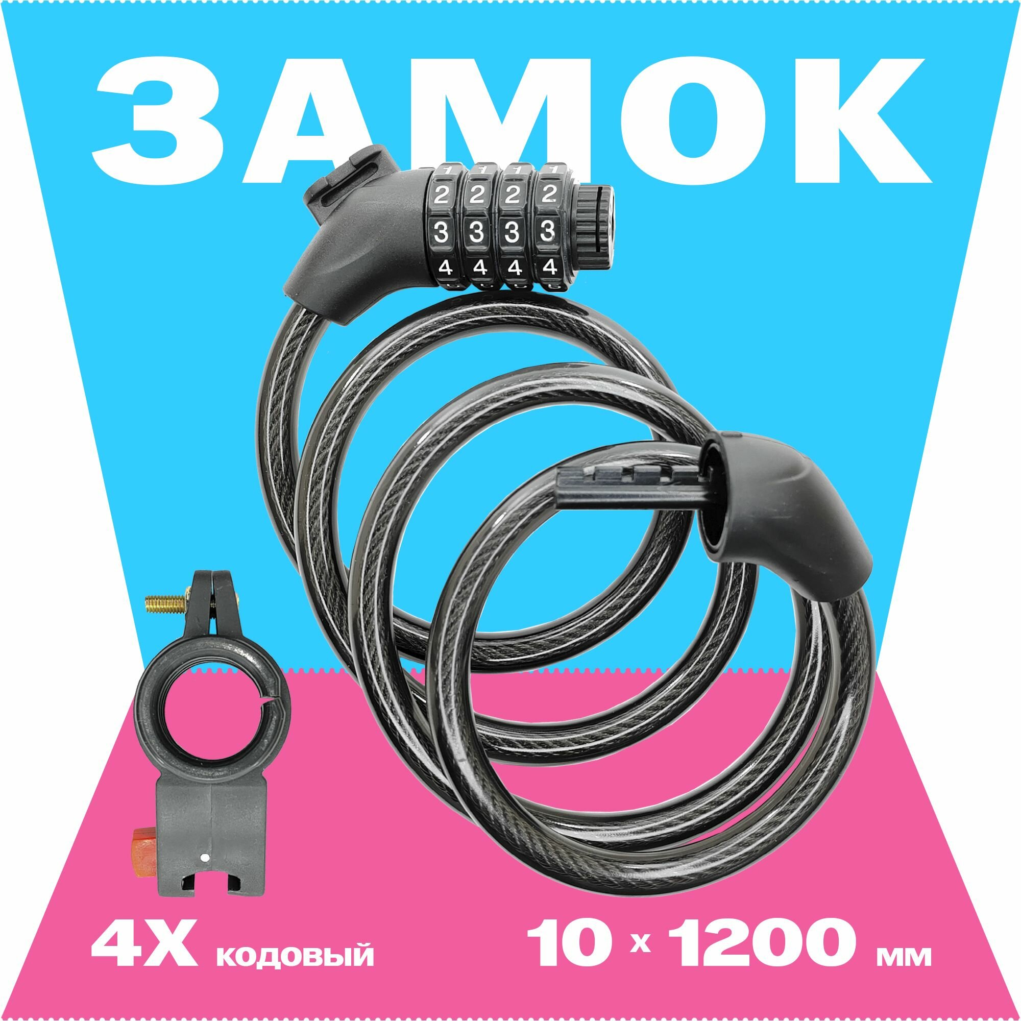 Замок для велосипеда кодовый противоугонный тросовый, 10х1200 мм, кронштейн подседельный, m705, Тайвань интересное: