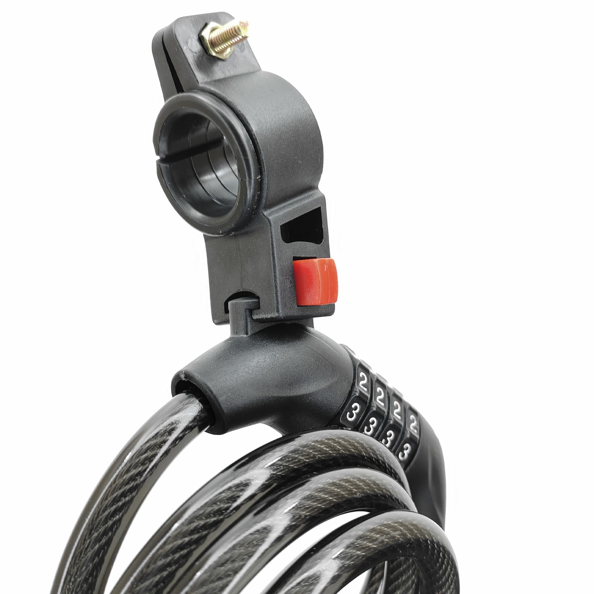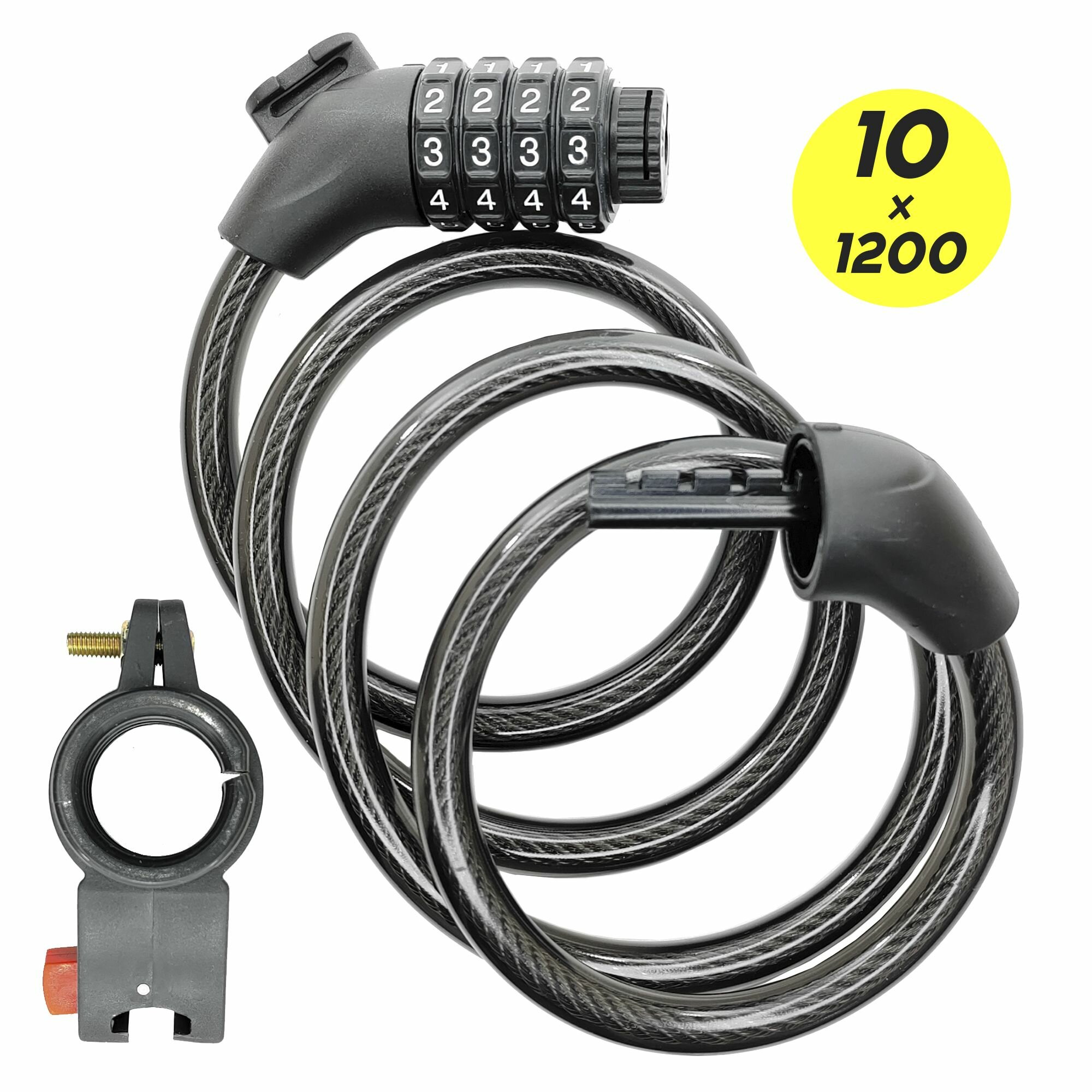 Замок для велосипеда кодовый противоугонный тросовый, 10х1200 мм, кронштейн для рамы, m705, Тайвань
