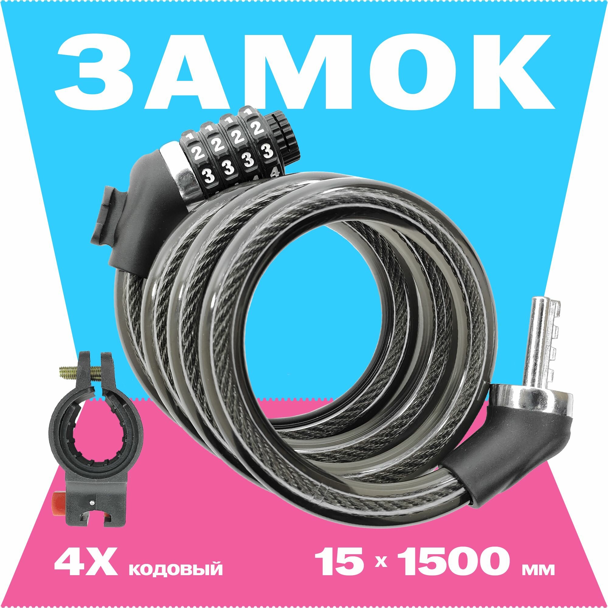 Замок для велосипеда кодовый противоугонный тросовый, 15х1500 мм, кронштейн подседельный, m707, Тайвань интересное: