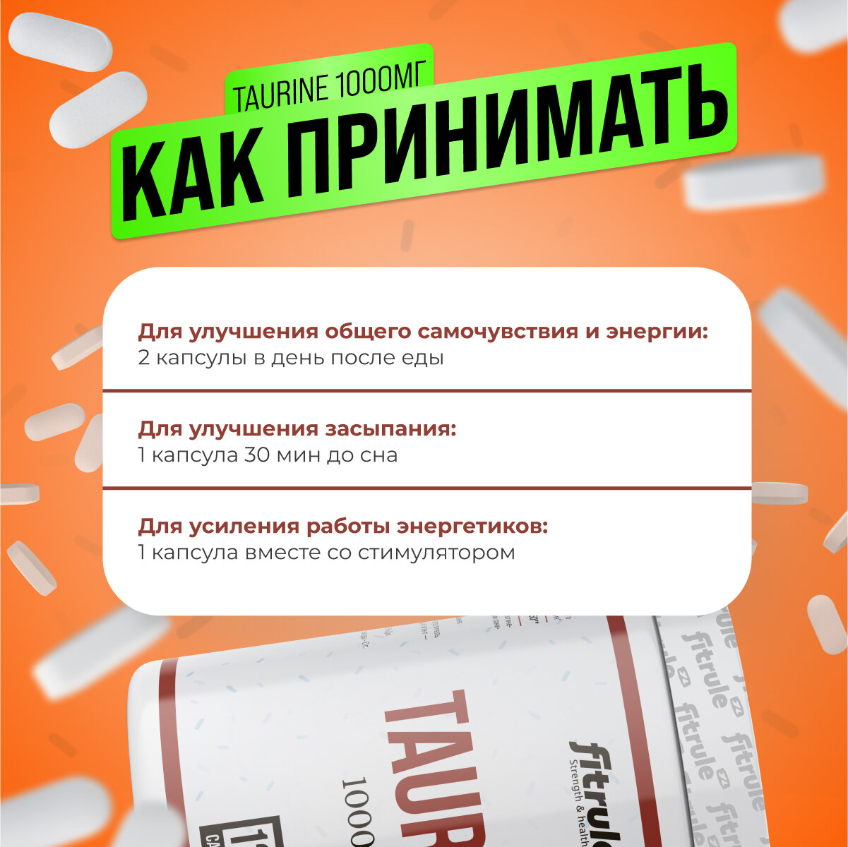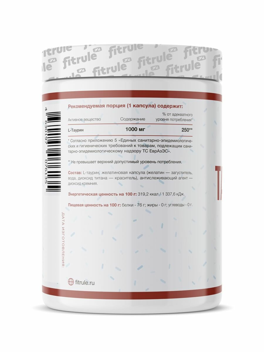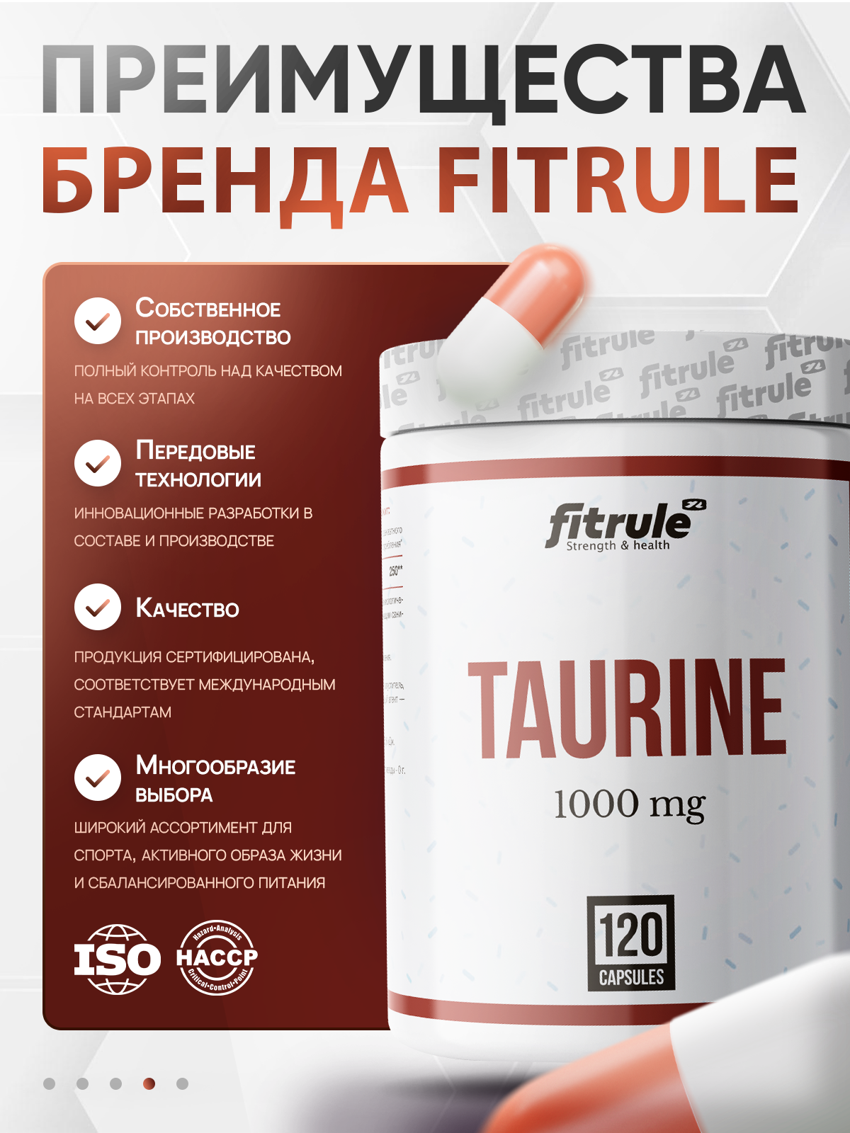 Fitrule Taurine 1000 мг - аминокислота и стимулятор для повышения работоспособности, 120 капсул
