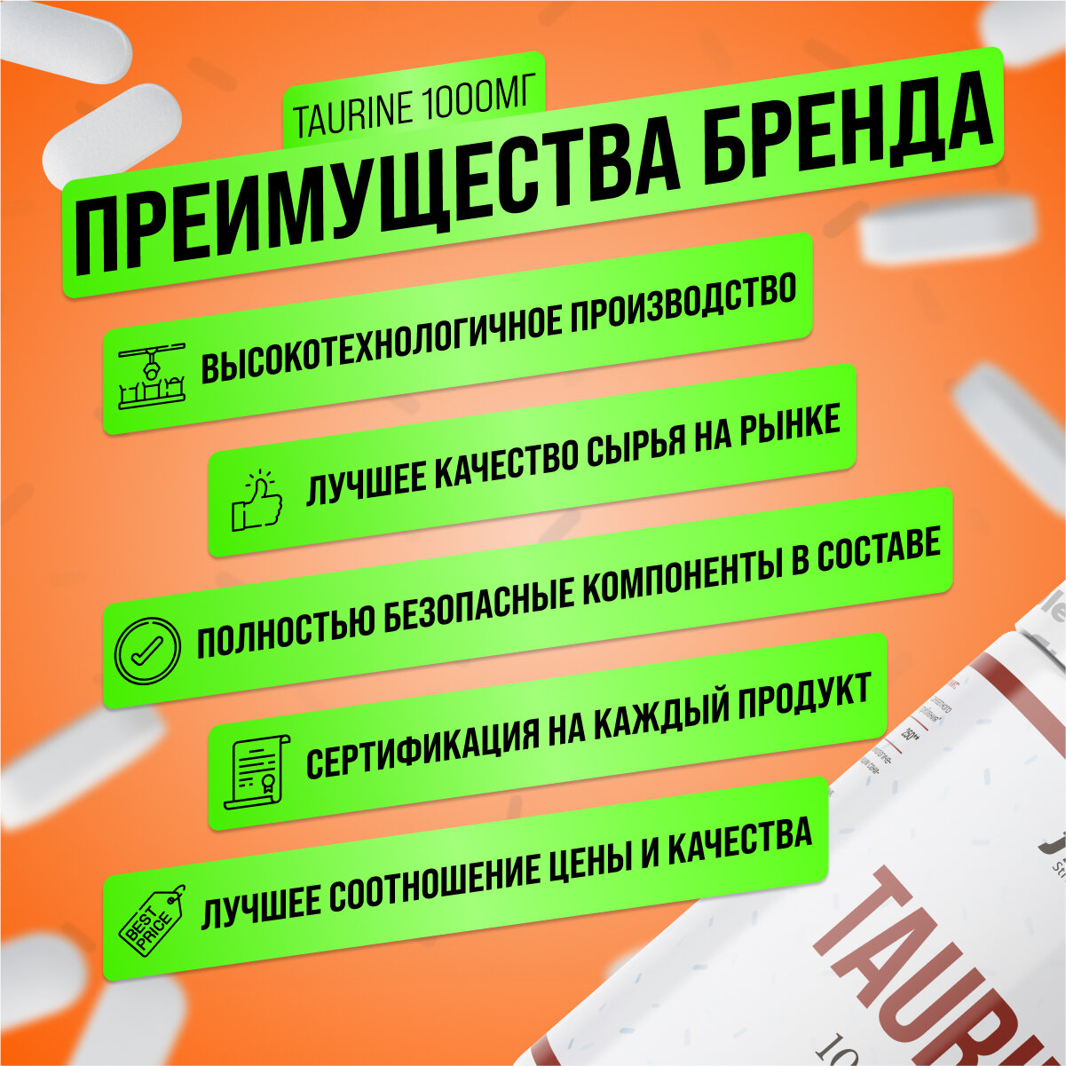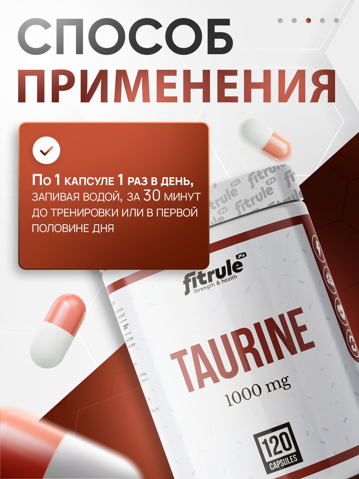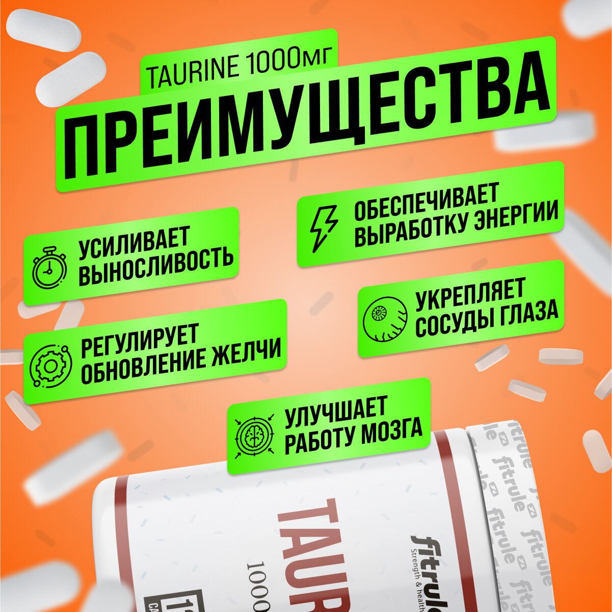 Fitrule Taurine 1000 мг - аминокислота и стимулятор для повышения работоспособности, 120 капсул
