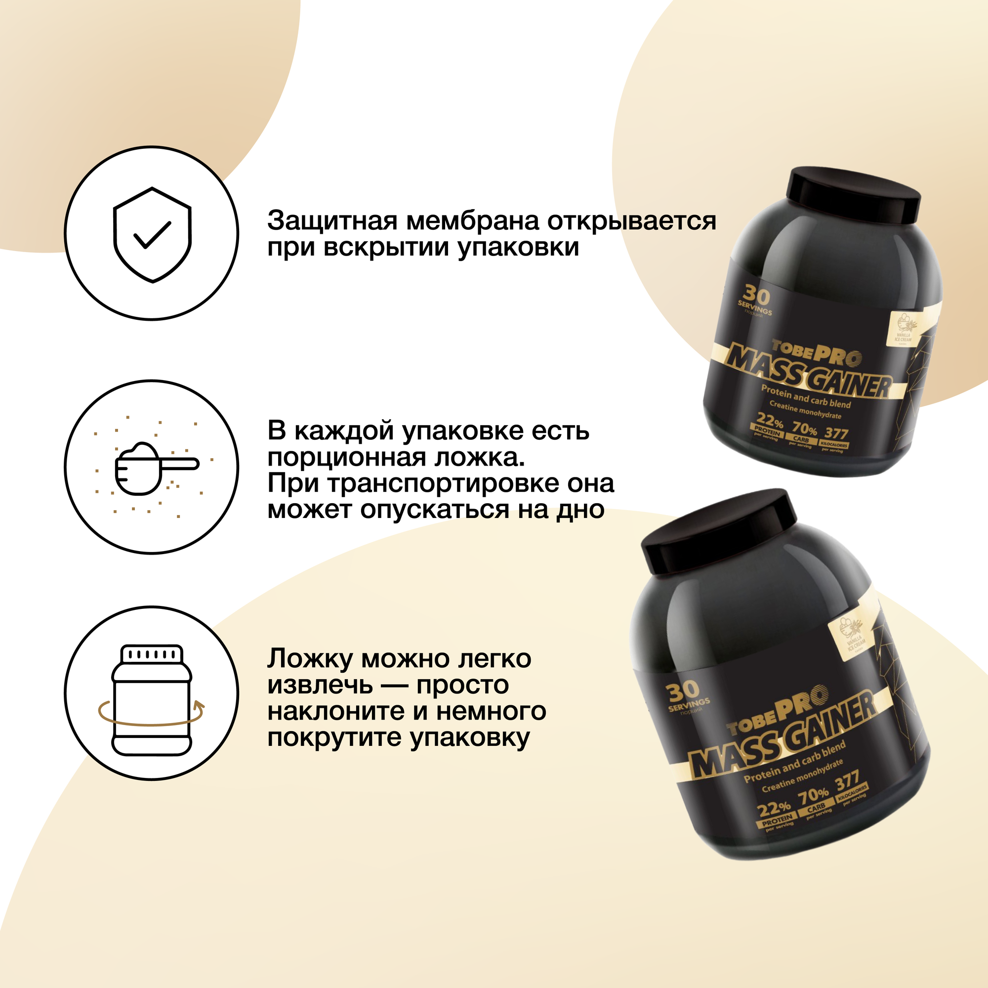 Купить Гейнер TobePRO MASS GAINER для набора массы Ванильное мороженое, 3кг/30 порций