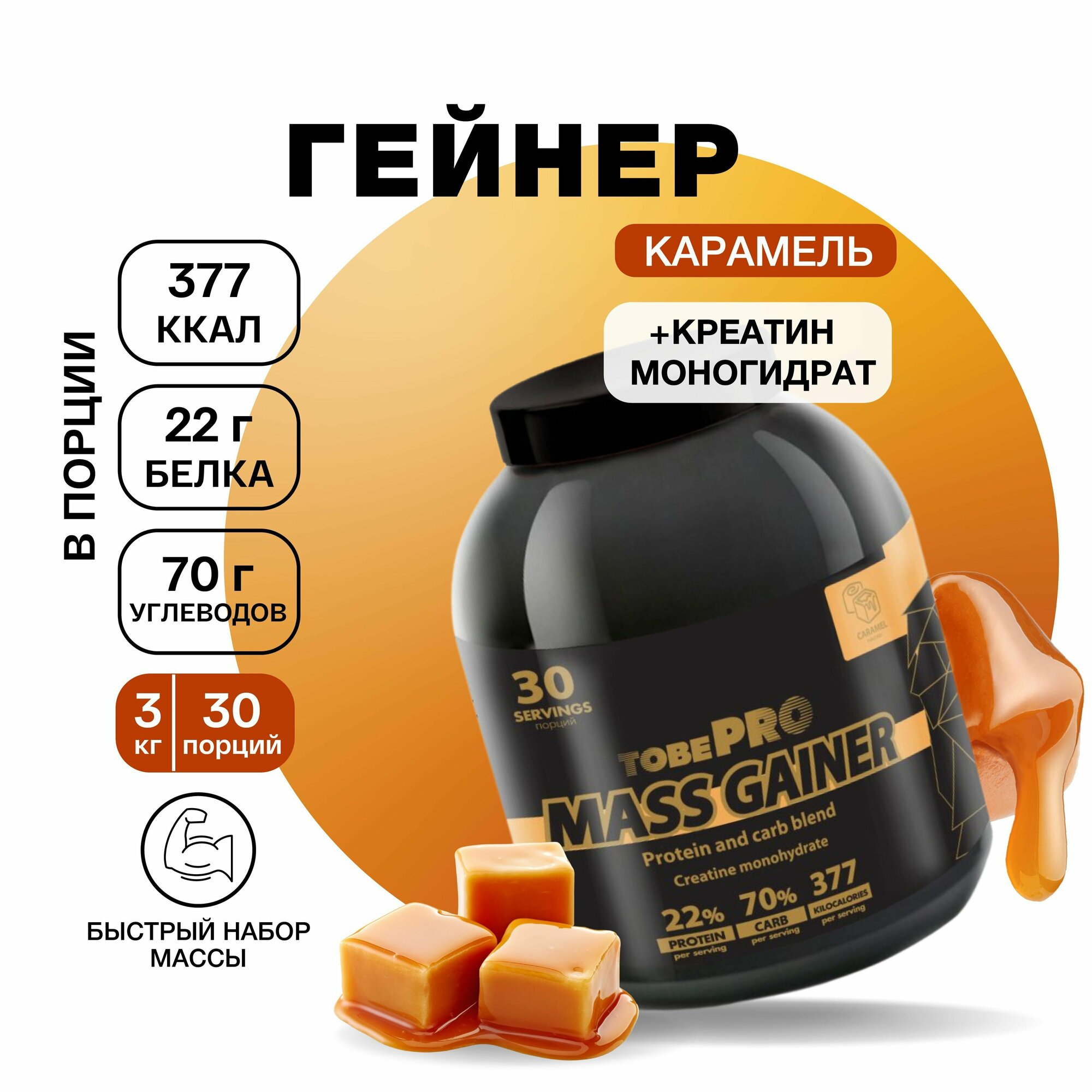 Гейнер протеин Карамель MASS GAINER TobePRO для набора мышечной массы, высокобелковый, 3 кг