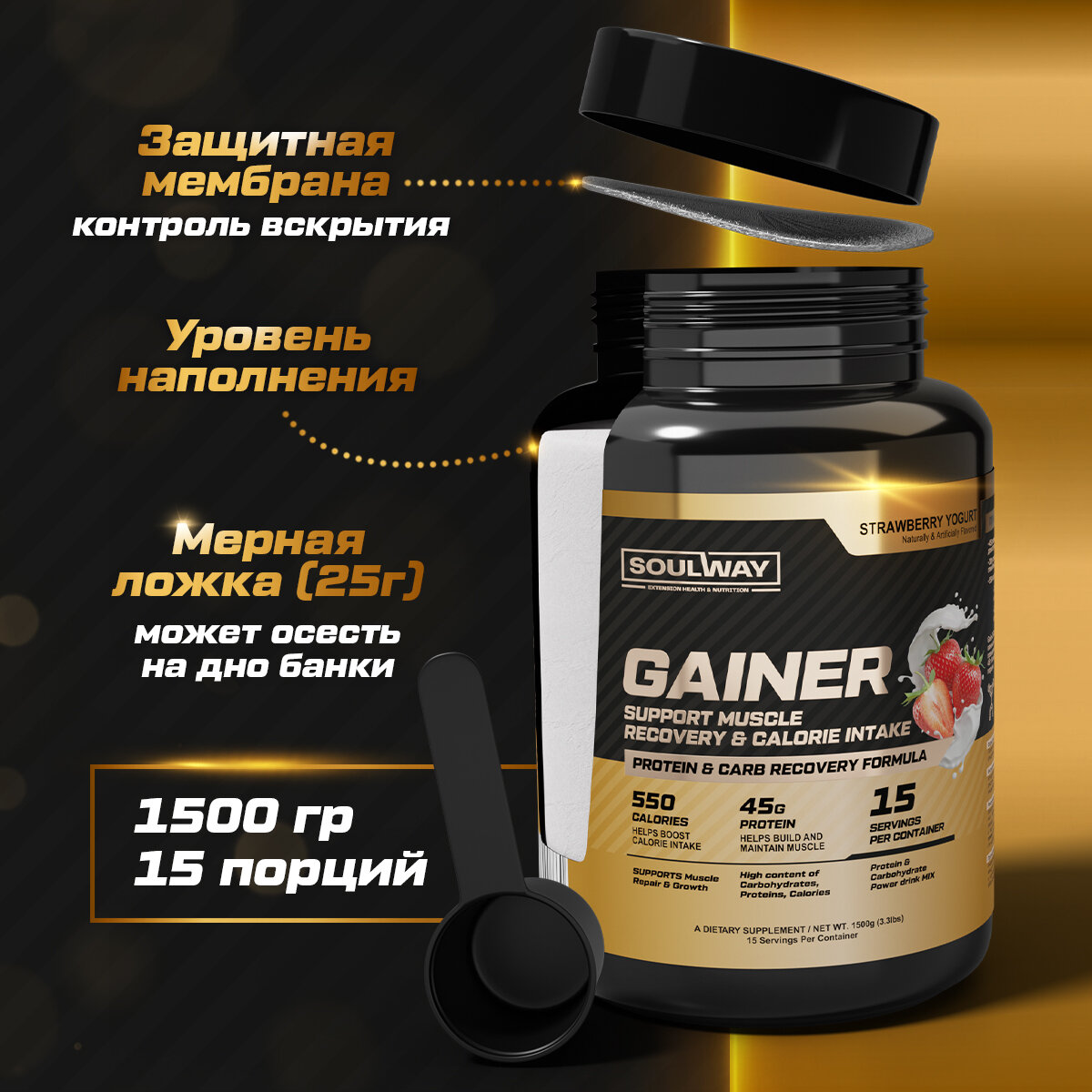 СохранитьГейнер высокобелковый / клубничный йогурт / 1500 гр 15 порций интересное: