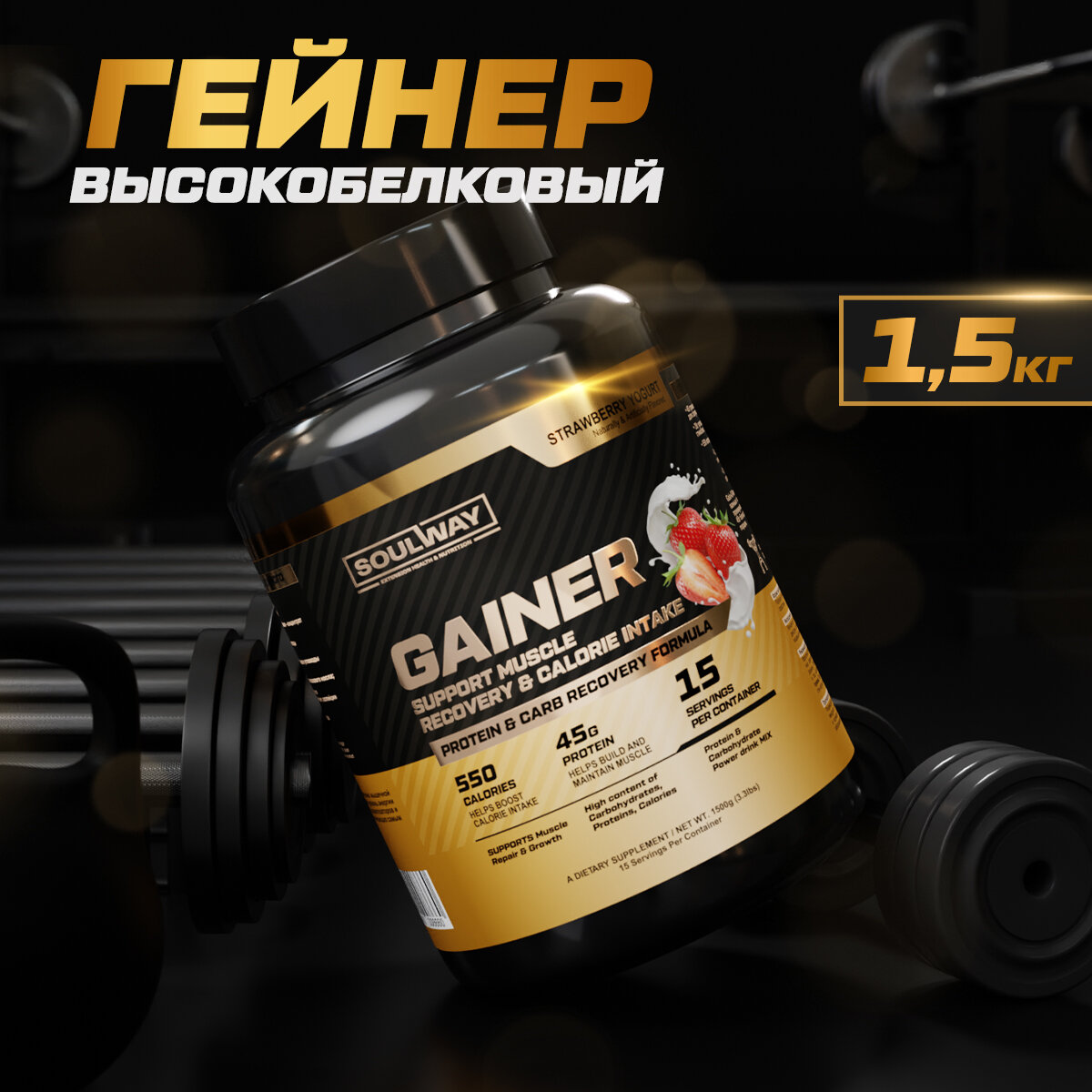 Купить Гейнер высокобелковый / клубничный йогурт / 1500 гр 15 порций