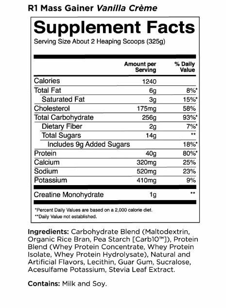 СохранитьRule One MASS GAINER, Высококалорийный гейнер, 2,6 кг (Ванильный крем) интересное: