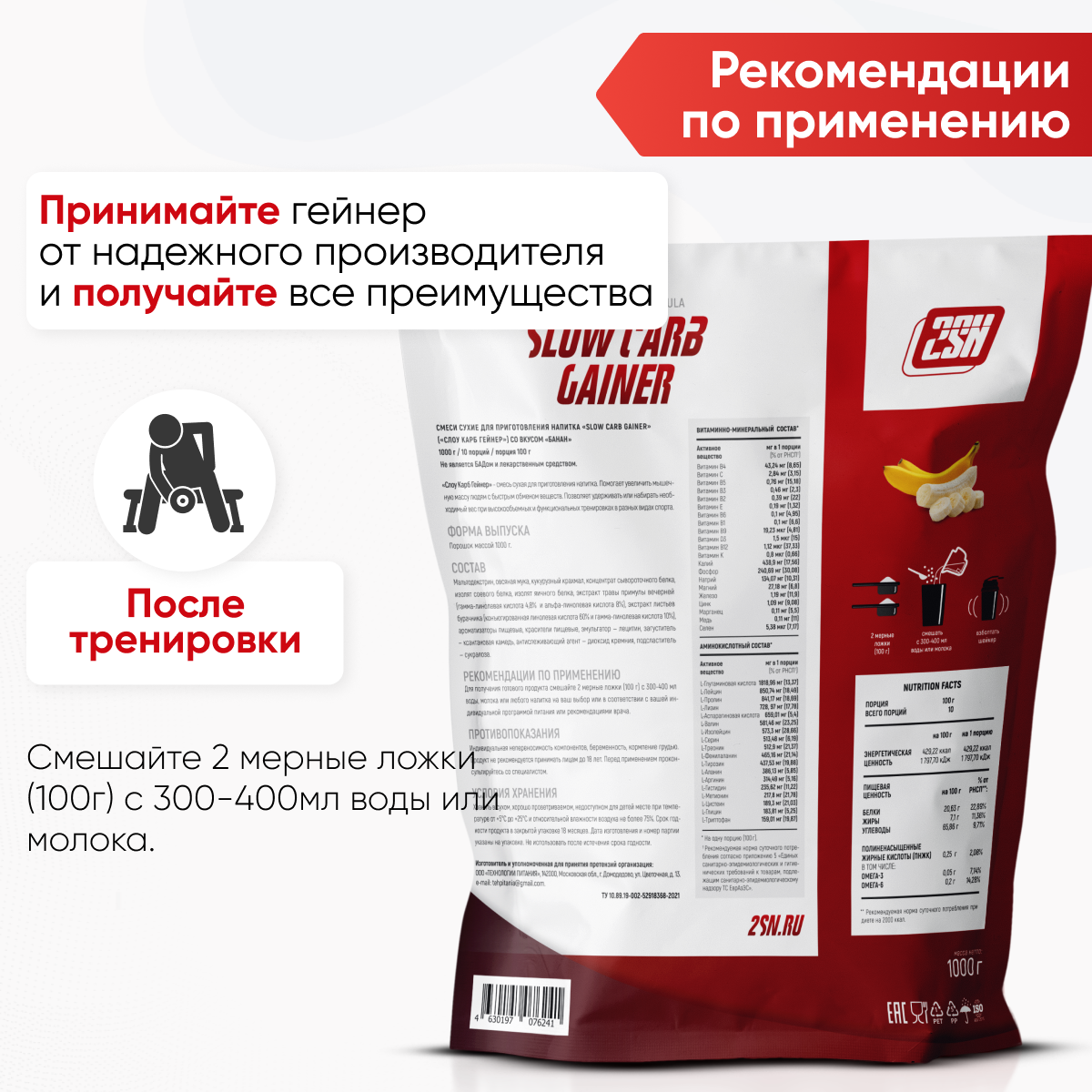 Гейнер для набора мышечной массы с медленными углеводами 2SN Slow Carb Gainer 1000г Банан