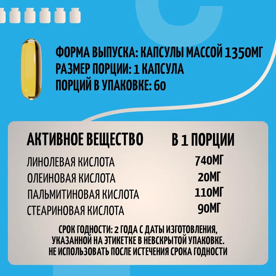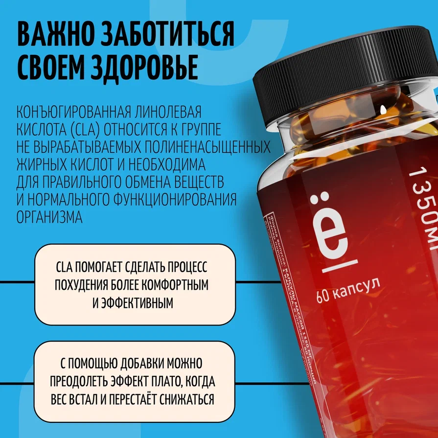 Комплекс жиров и аминокислот Ё|батон CLA, жиросжигатель в капсулах 60 штук интересное: