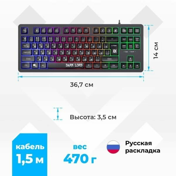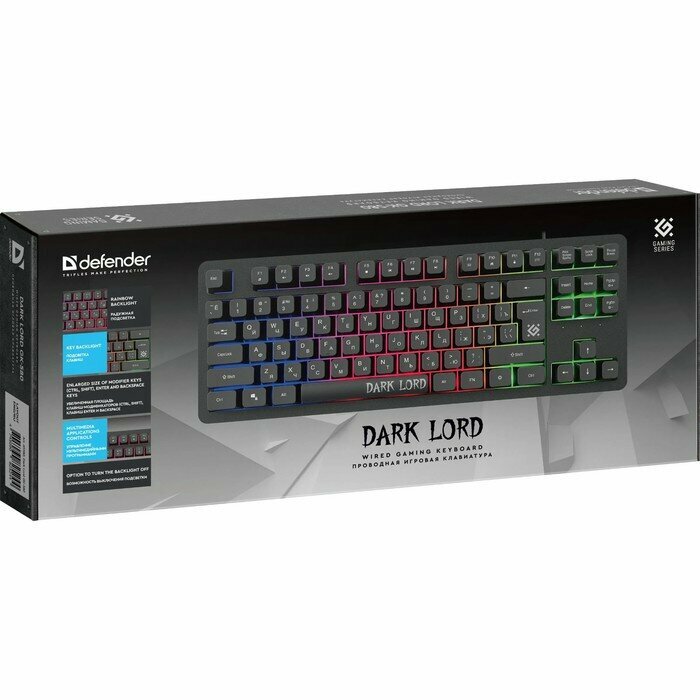 DEFENDER Проводная игровая клавиатура Dark Lord GK-580 RU, черный,радужная,87кнопок