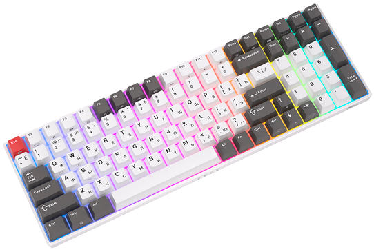Игровая клавиатура Royal Kludge RK100 (USB/2.4 GHz/Bluetooth, RGB, Hot Swap, Red switch), белый/серый/красный