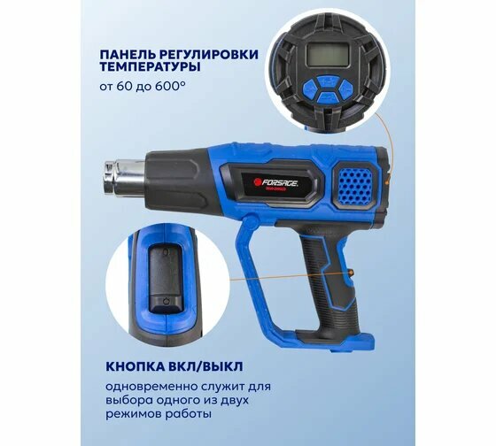 Фен промышленный электрический с индикатором температуры и насадками Forsage
