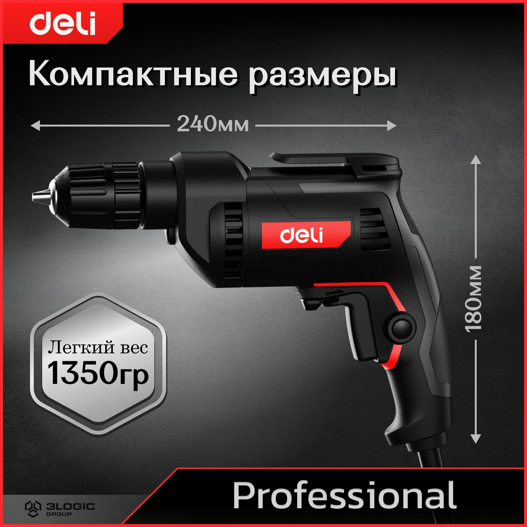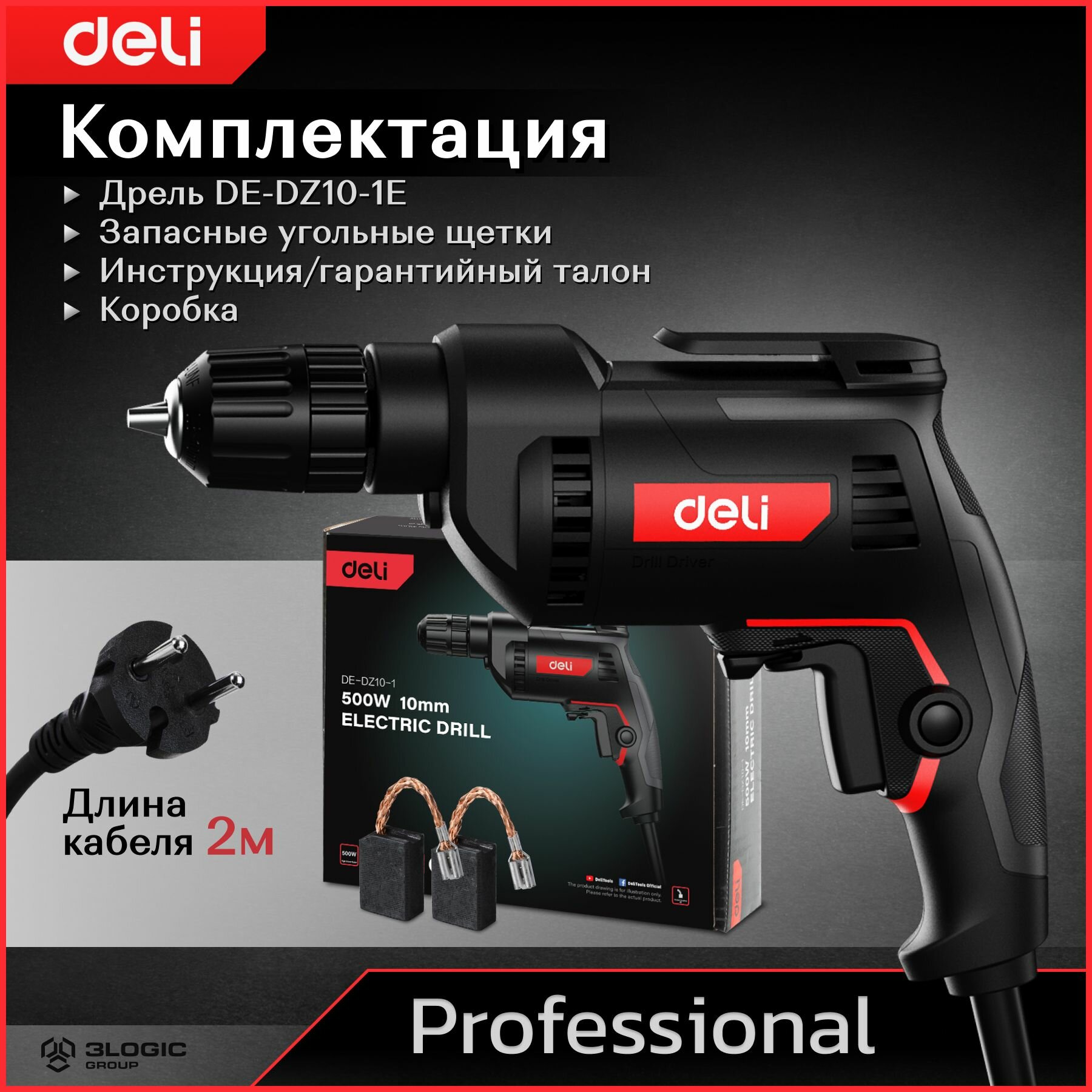 Профессиональная сетевая безударная дрель Deli DE-DZ10-1E (500Вт, быстрозажимной патрон 10мм, 3300 об/мин)