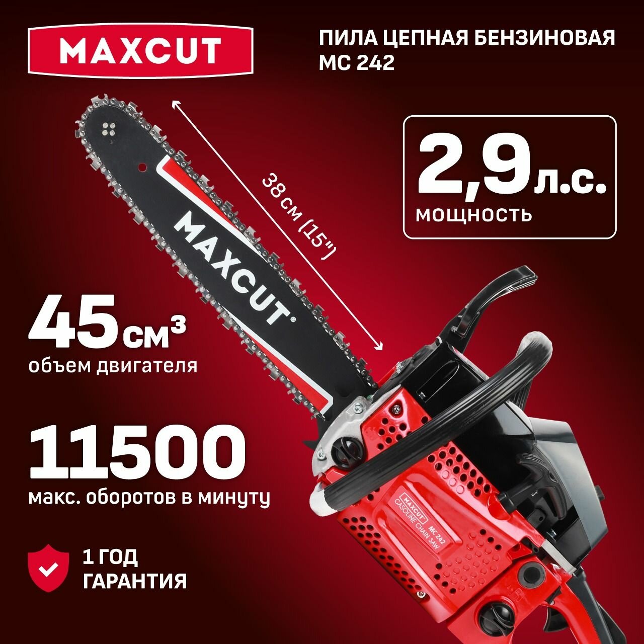 Бензопила цепная бензиновая MAXCUT MC 242 ручная садовая, 2.9лс, шина 15", 64 звена интересное: