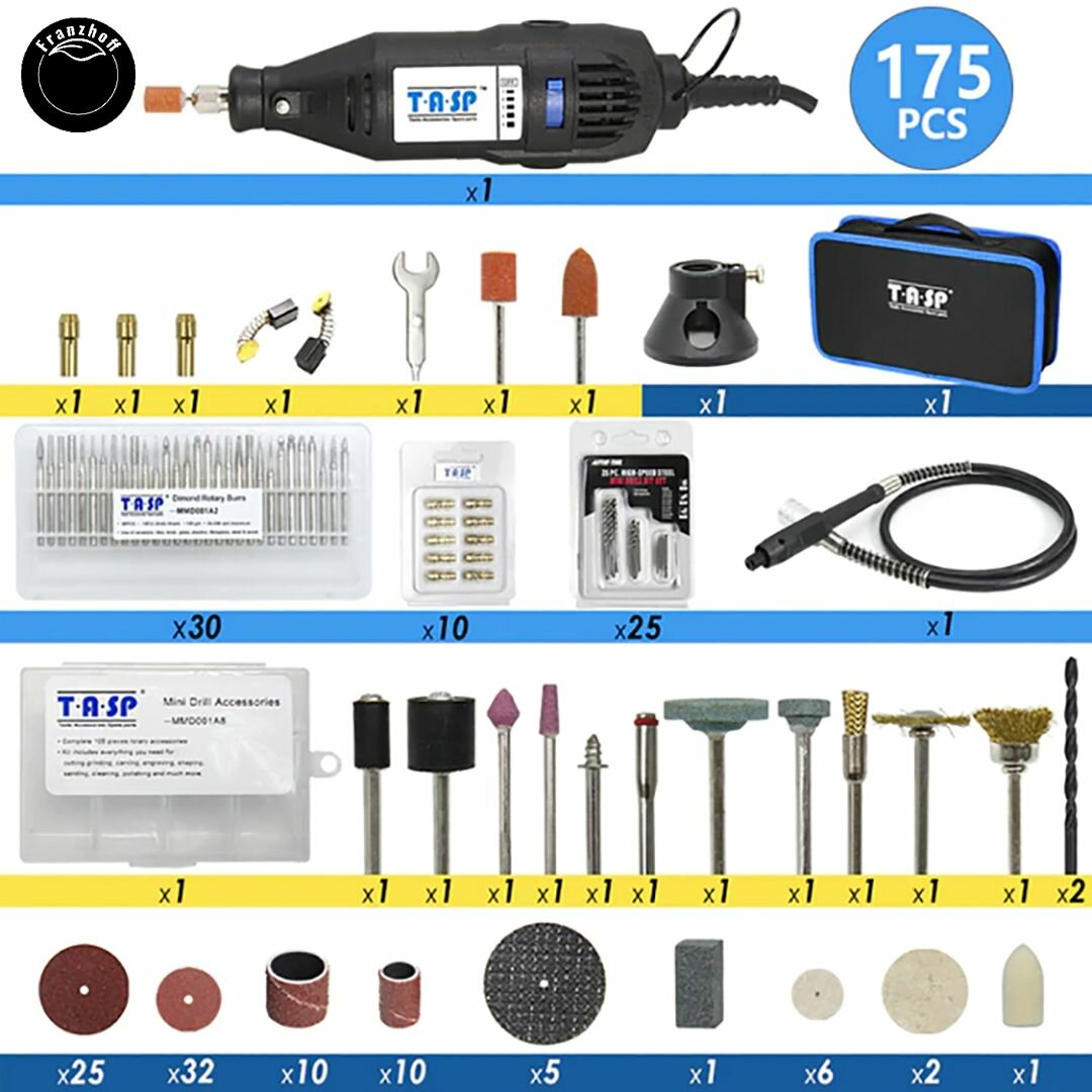Гравер Franzhoff ( аналог дремель ) с гибким валом удобной сумкой кейсом на 175 предметов подходит для шлифования, полировки, резки, гравировки сверления для Dremel интересное: