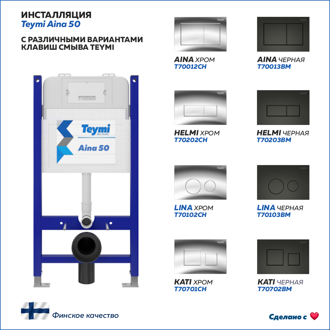 Комплект Teymi "Готовое решение": Инсталляция Aina 52 + клавиша смыва Ellie + унитаз Solli