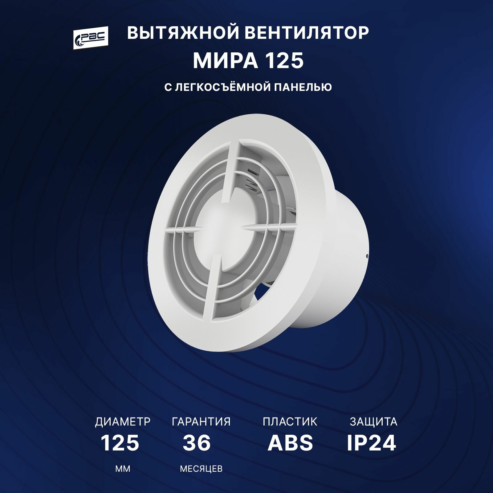 Вентилятор вытяжной круглый РВС Мира 125мм, 18 Вт, 35 дБ, 189 м3/ч