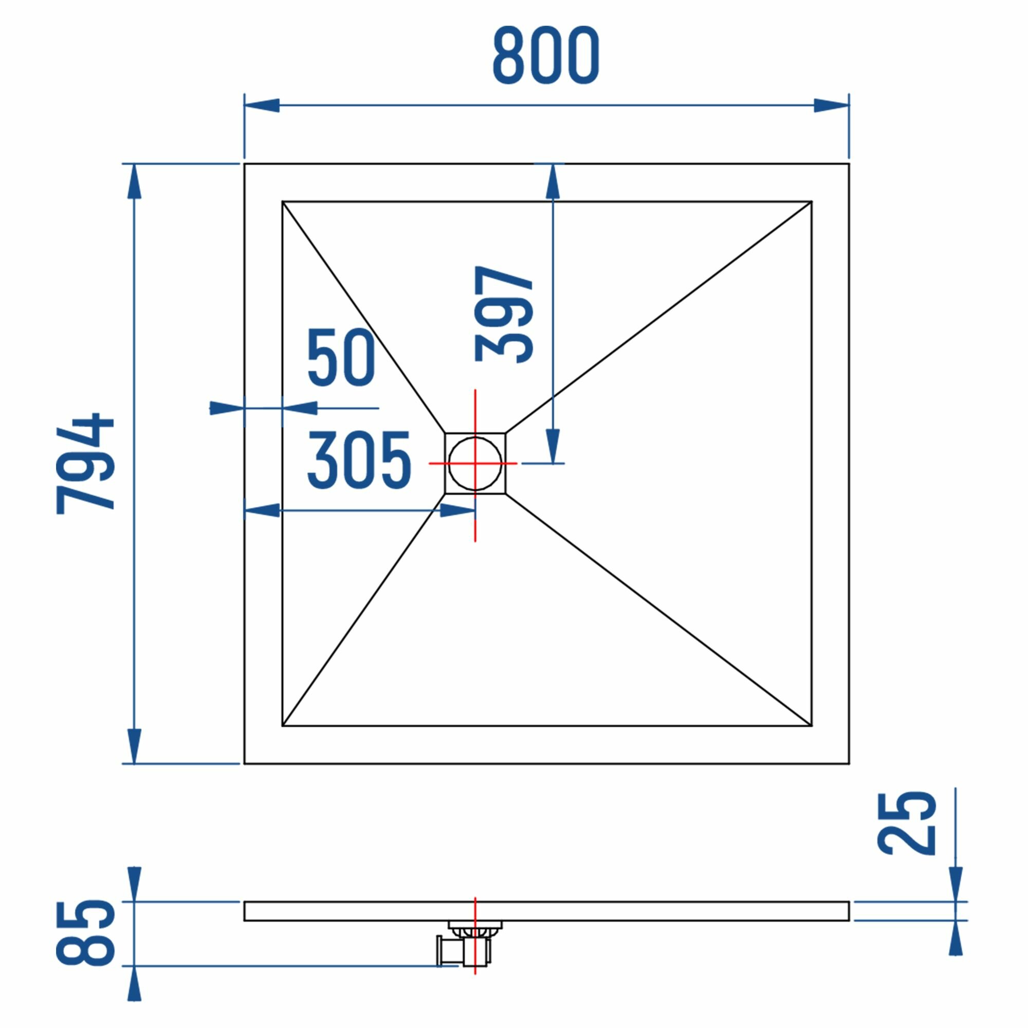 Купить Поддон для душа квадратный IN 80х80 Графит