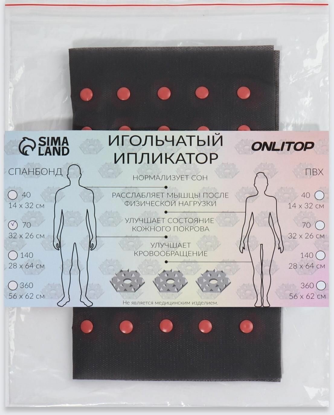 ONLITOP Ипликатор-коврик, основа спанбонд, 70 модулей, 32 × 26 см, цвет тёмно-серый/красный