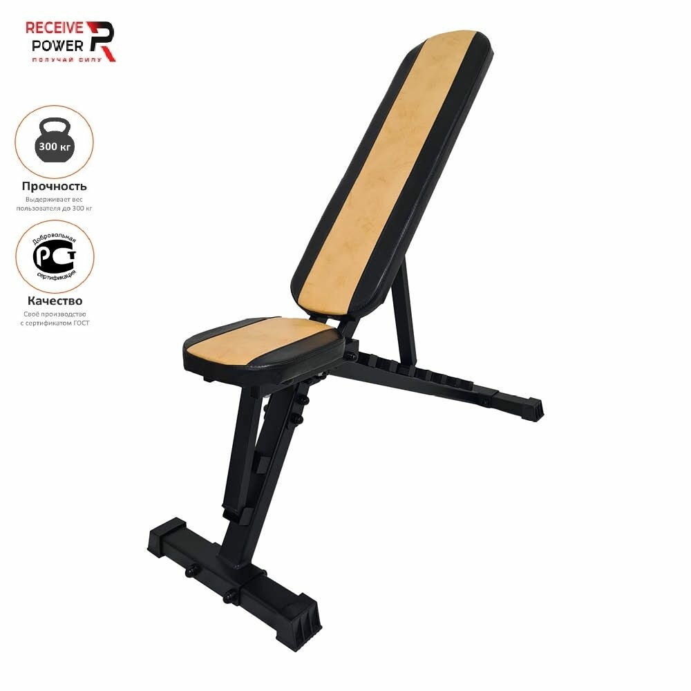 Купить Скамья силовая Receive Power цельносварная для жима (свыше 350кг) желто-черная обивка