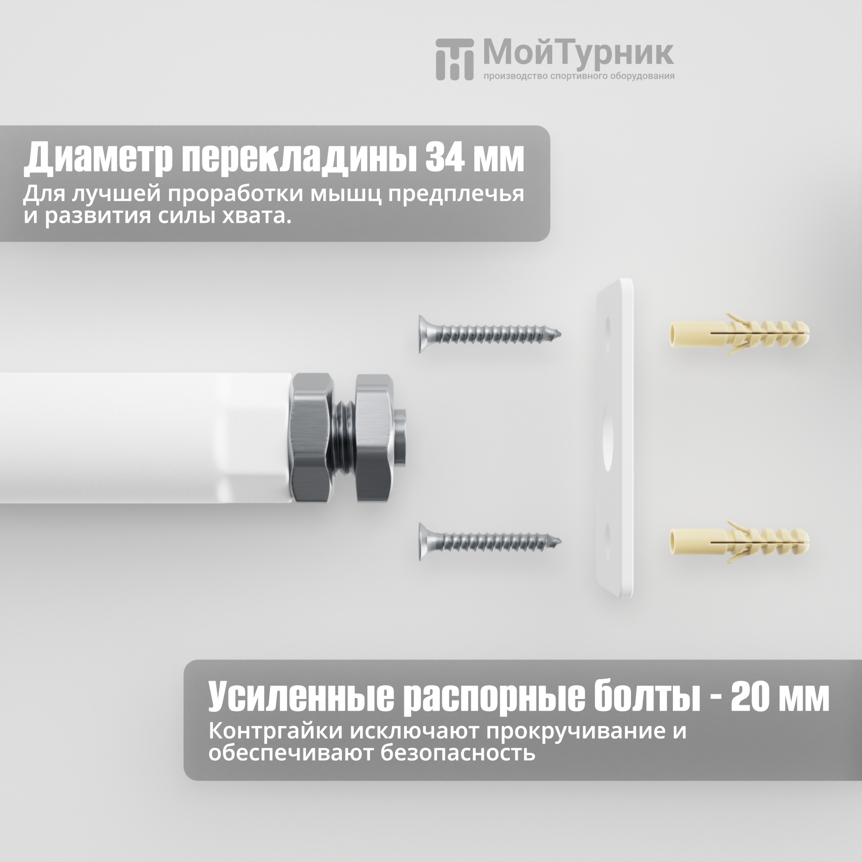 Турник распорный в проем между стен 170-180 см, до 200 кг, белый, МойТурник