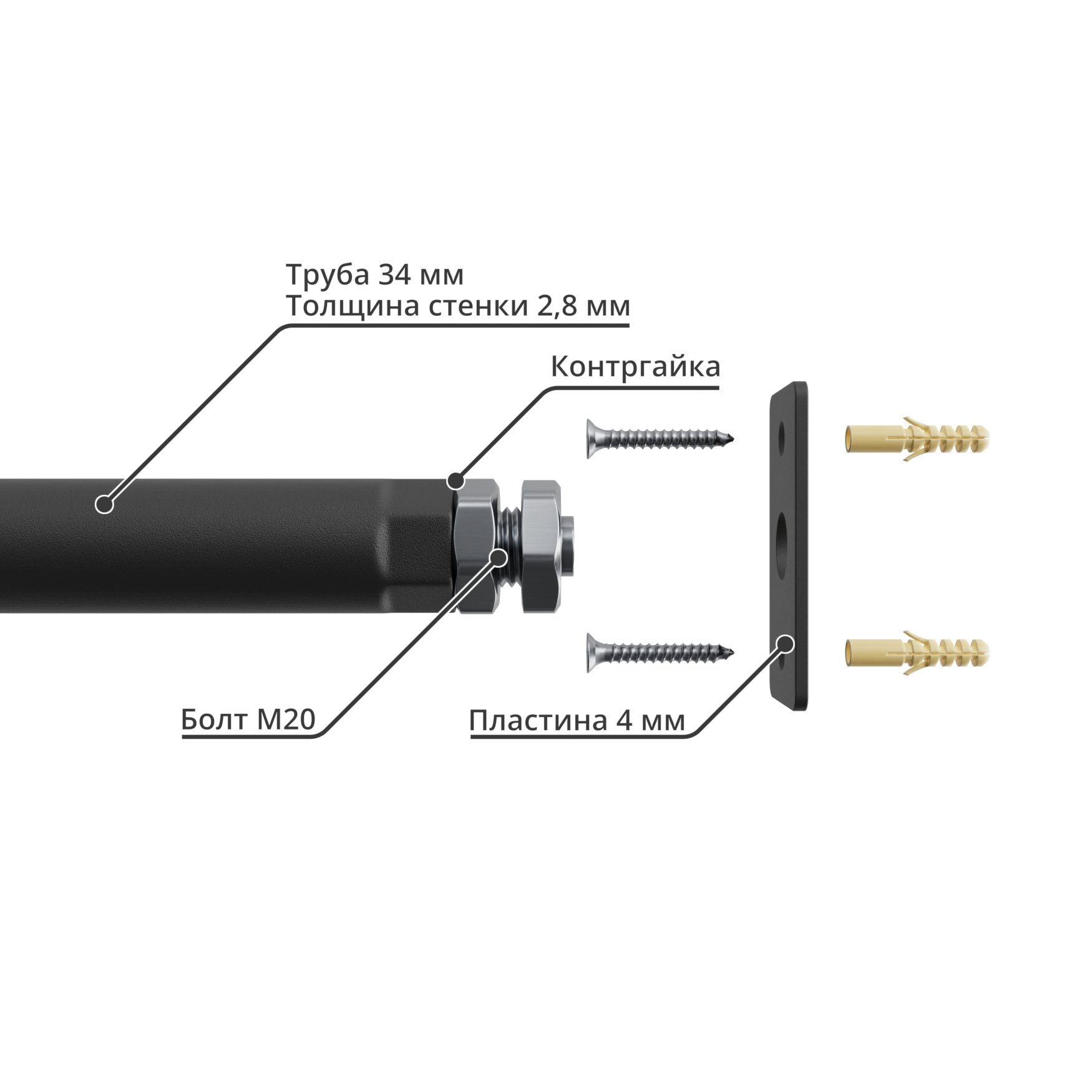 Турник распорный в проем между стен 140-150 см, до 200 кг, черный, МойТурник