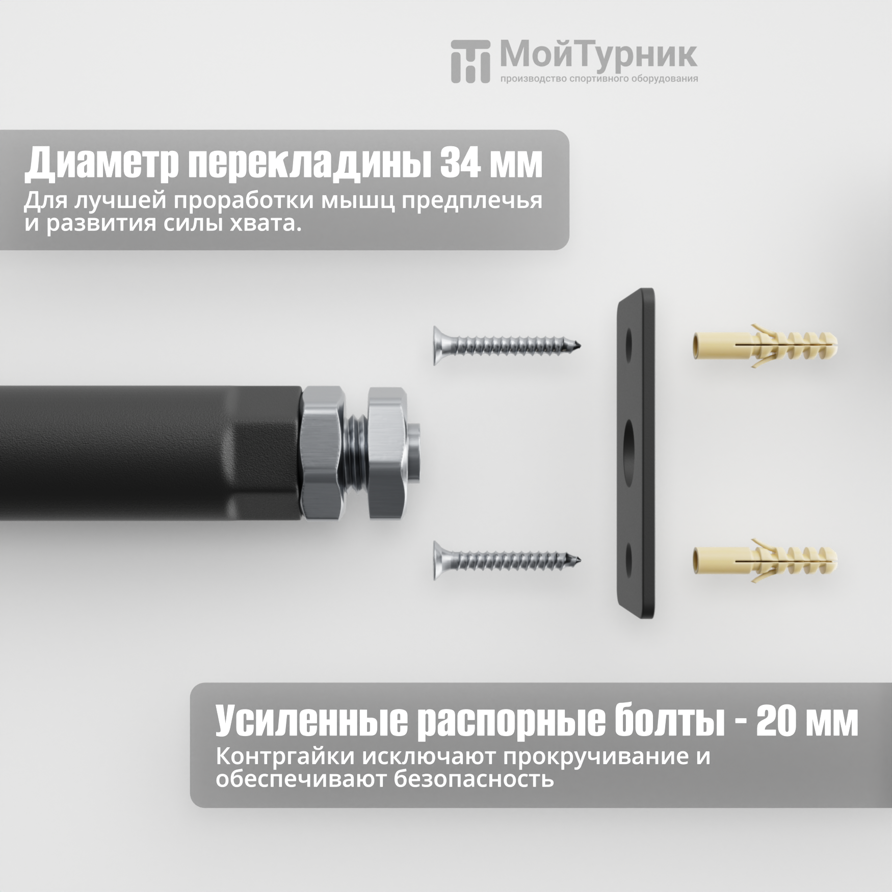 Турник распорный в проем между стен 170-180 см, до 200 кг, черный, МойТурник