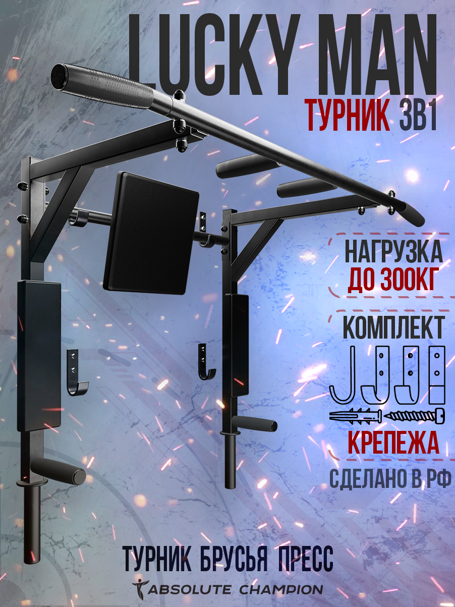 Турник настенный 3 в 1 брусья пресс тренажер для спорта дома, усиленный, нагрузка 300кг Удача лайт черный с черными ручками интересное: